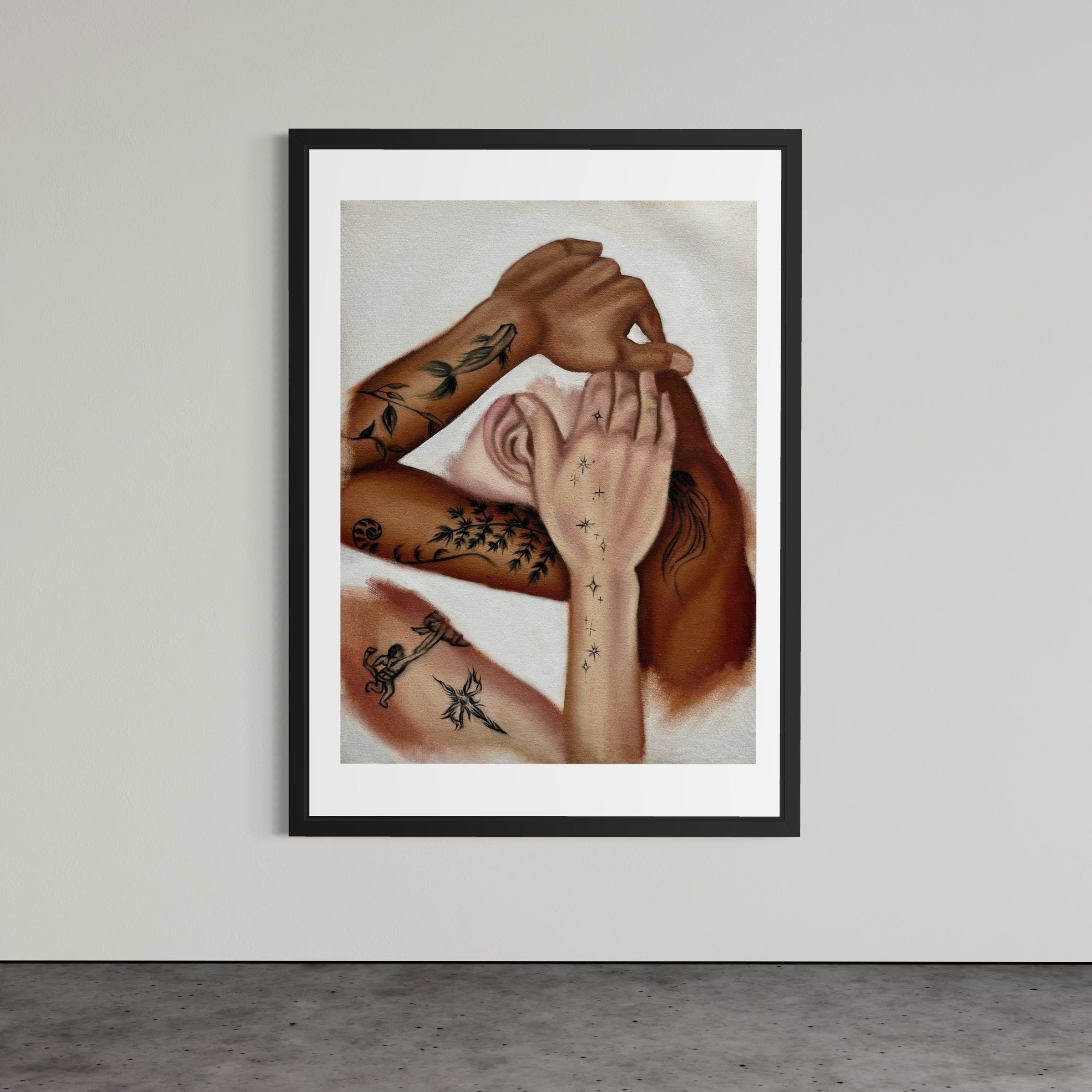 With a focus on the layered psychology of tattoos, hair, and identity, Lyons’ art renders the body in abstract forms that omit societal categorisation and invite a fluid perception of physical boundaries.